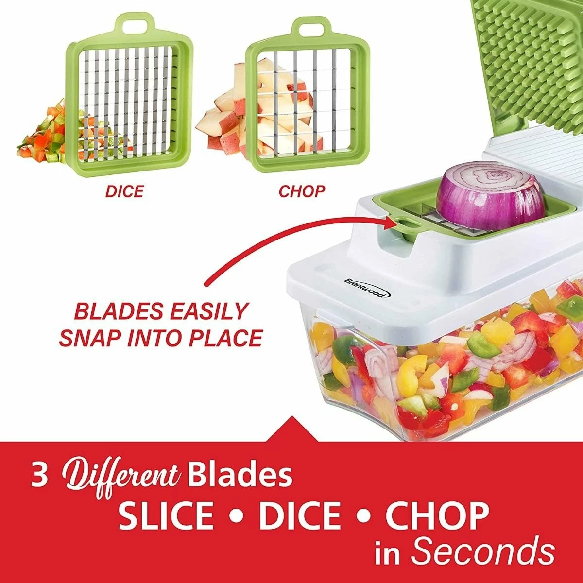 Brentwood Appliances Food Chopper & Vegetable Dicer (Green) Features