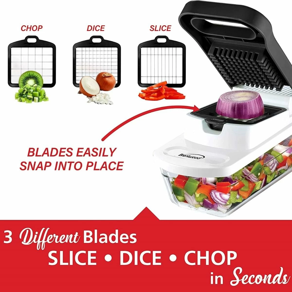 Brentwood Appliances Food Chopper & Vegetable Dicer (Black) Features