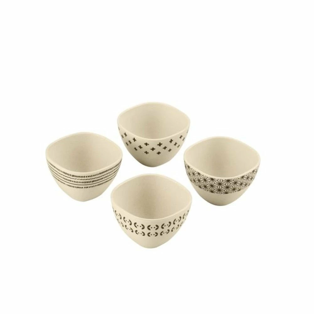 Perfect for staging prepped ingredients when cooking or for serving sides and sauces at the table, this set of four white and black Cuisinart 8oz Pinch Bowls brings a modern touch to counter and table! The 8oz bowls are durable and dishwasher safe and made from bamboo fiber, a renewable resource. Each set features one each of four contemporary designs printed in black on the outside of the bowls and pairs with the matching set of Cuisinart Mixing Bowls. At 5.38″ wide, the pinch bowls are large enough to serve a variety of organization tasks around the home and could be just as useful as desk organizers, storage containers, or candy bowls.