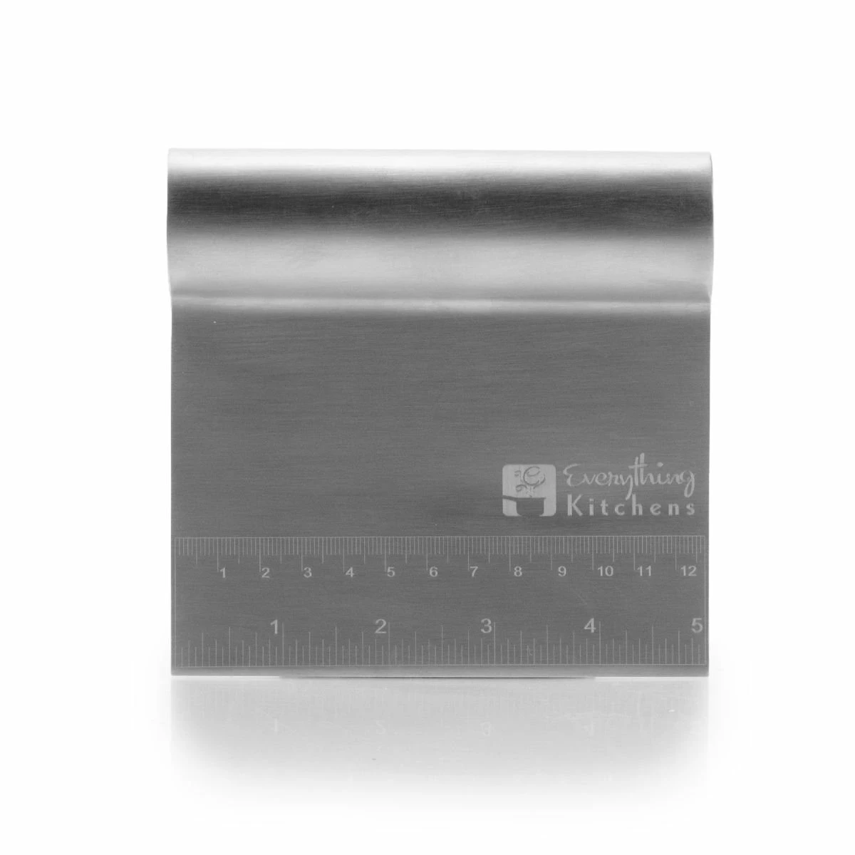 Whether you’re a professional baker who relies on having the right tool for precise dough portioning or a beginner who only occasionally dabbles in homemade breads and pizzas, the Everything Kitchens Bench Scraper is a surprisingly useful utensil for any kitchen. This bench scraper has a ruled stainless steel blade that is perfect for dividing, portioning, trimming, lifting and transferring dough. It can also be used to cut butter into flour for biscuits and pie dough. If you don’t think you bake enough to justify owning a specialized baking tool, this bench scraper can also cut brownies, lasagna or casseroles into even squares better than a knife; roughly chop vegetables and scoop them easily into your pan or bowl without spilling; smooth frosting on a cake; and scrape difficult-to-remove food residue from baking sheets. It’s even dishwasher-safe for easy cleanup. Order your simple yet versatile Everything Kitchens Bench Scraper today!
