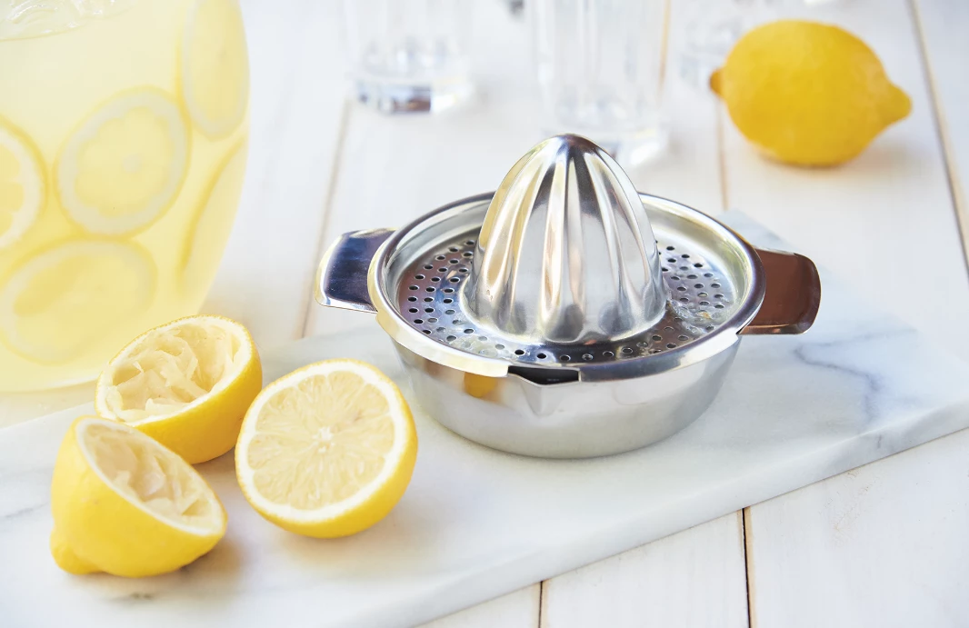 Pour yourself or a guest a fresh glass of freshly made lemonade or orange juice made with this Fox Run Stainless Steel Juicer Press with Bowl! This juicer press comes with a strainer attached that catches pulp and seeds so your juice is smooth and yummy. The 202 stainless steel juicer press and bowl can hold up to 13.5 oz and is very easy to clean. Enjoy the freshness of homemade juice made possible by your new Fox Run Stainless Steel Juicer Presser and Bowl!