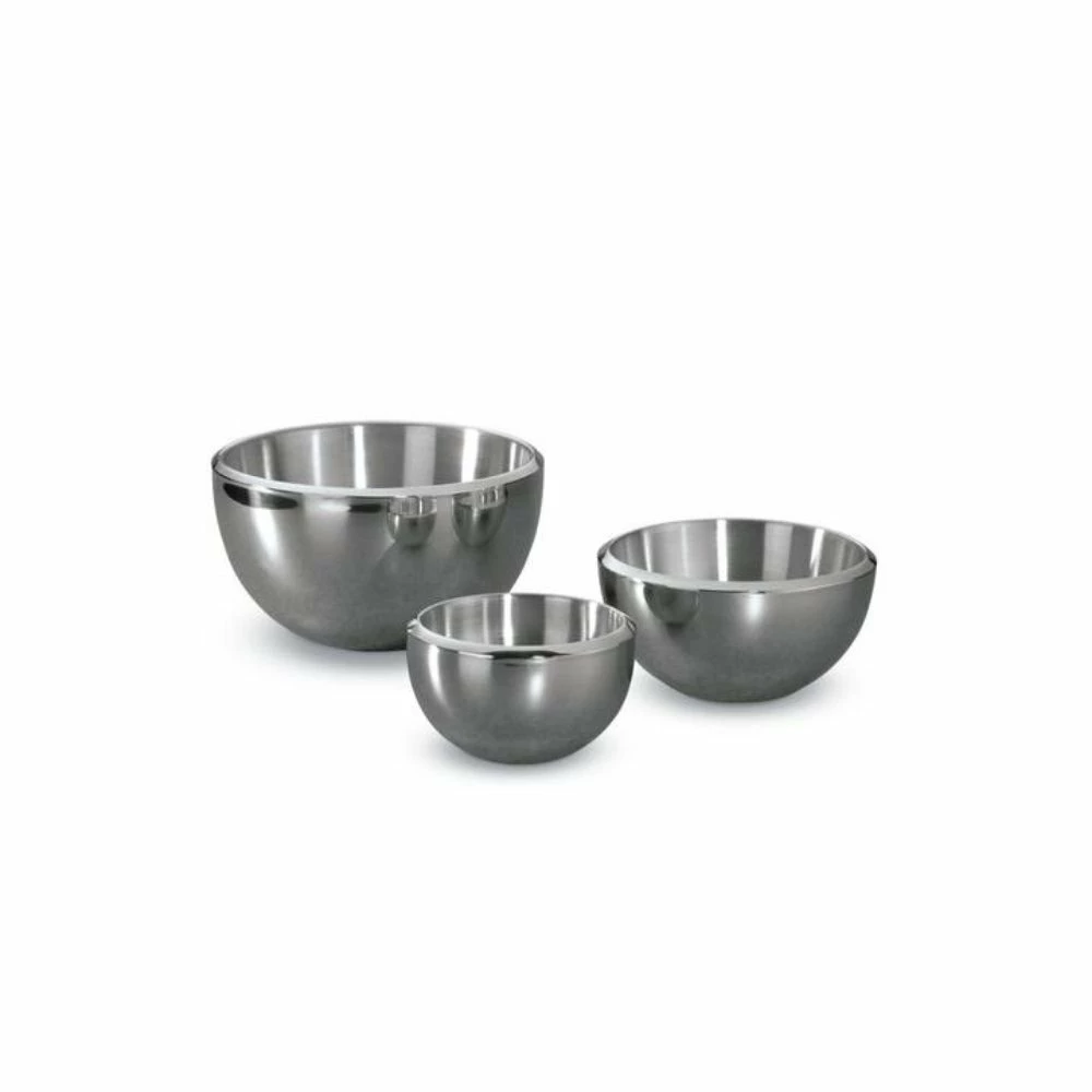 Do you want modern prep bowls that will do more than just look good on your countertop? The Hammer Stahl 3-Piece Double Wall Milano Bowl Set is for you. This set of three bowls is ideal for storing and serving food both hot and cold. Included are the 3-Quart bowl, 1.5-Quart bowl, and 0.75-Quart bowl. The bowls are double-walled, so they maintain the temperature of the food inside. The modern, smooth design is a perfect complement to any kitchen and the various sizes are ideal for holding sides and main courses alike. Add the 3-Piece Double-Walled Milano Bowl Set to your kitchen today!ย