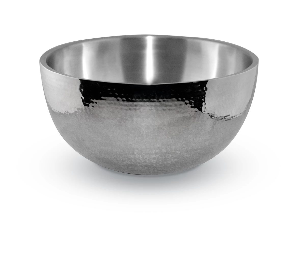 Are you looking for a stylish way to store your hot and cold foods for big dinners? The Hammer Stahl 4-Quart Hammered Double Wall Bowl was designed just for you. This stainless steel bowl features a hammered exterior that complements any kitchen aesthetic. The double-walled bowl is insulated to keep your foods at the perfect temperature, which makes this bowl ideal for serving food, whether it be salad or mashed potatoes. The smooth interior of the bowl makes it easy to clean. Get the 4-Quart Hammered Double Wall Bowl today and easily store and serve your favorite recipes today!Β