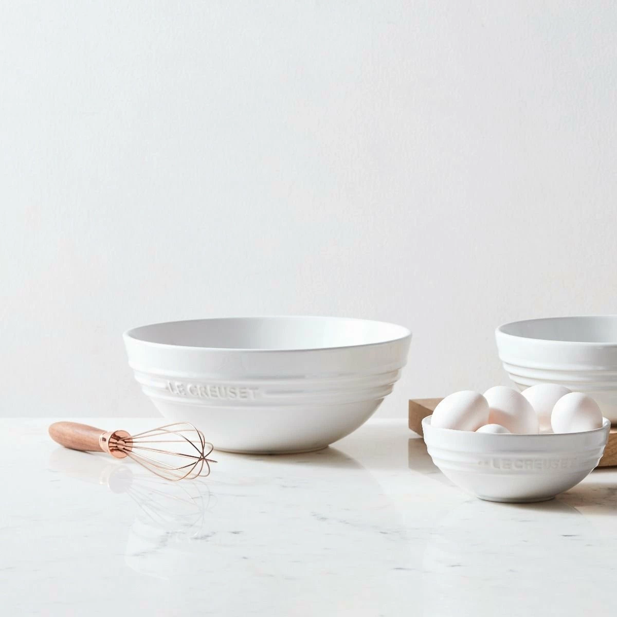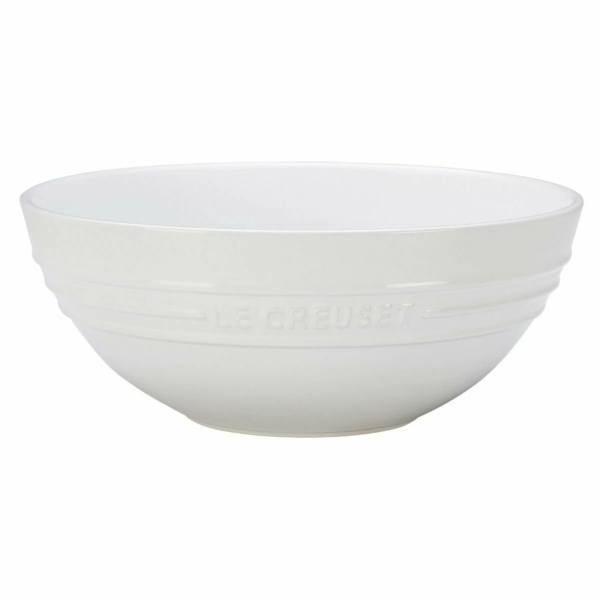 The density of Le Creuset Stoneware prevents moisture absorption to prevent rippling and cracking with a high fired scratch-resistant enamel exterior makes the Le Creuset Multi Bowl durable and strong. Use your Le Creuset Multi Bowl to broil, oven cook, and even microwave vegetables, rice, and more. The Multi Bowl is oven safe up to 500ยฐ F. With a 3 quart capacity and a crisp white enamel finish the Le Creuset Multi Bowl is ready to use as a food serving bowl, salad bowl, or even a mixing bowl for cake batter or cookie doughs. Versatile and beautiful the White Multi Bowl by Le Creuset is a stoneware peice that you will enjoy for years to come.