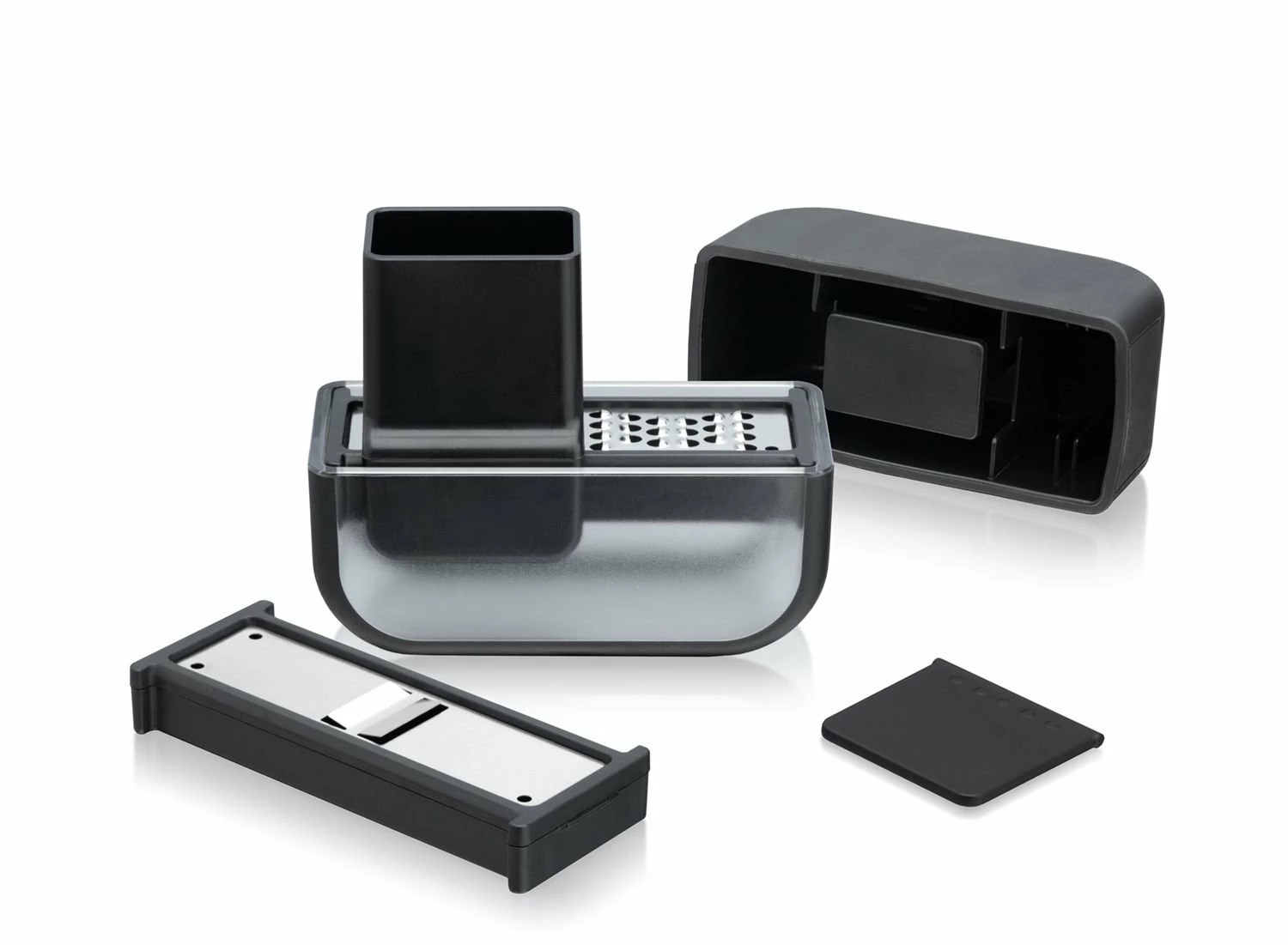 Slice paper-thin chips of garlic for a mellow garlic flavor in a sauce or mince finely for a bolder garlic flavor in a roasted dishβall while keeping your hands odor free with Microplaneβs Garlic Mincer & Slicer in Black! Microplane has made it easy to prep garlic for any dish without needing professional knife skills. Simply remove the lid and place peeled garlic cloves inside the hopper. Place the cover on and move it back and forth. Freshly cut garlic will fall into the clear-view lower chamber. A scraper is included to scrape the bottom of the blade and remove the garlic from the container. The two blades (one for slicing, one for mincing) are made with Microplaneβs legendary photo-etching process, so theyβre ultra-sharp and will cut the garlic with almost no effort on your part. With a smart design that keeps your fingers clear of the blade, you’ll be reaching for this easy-to-use tool all the time.