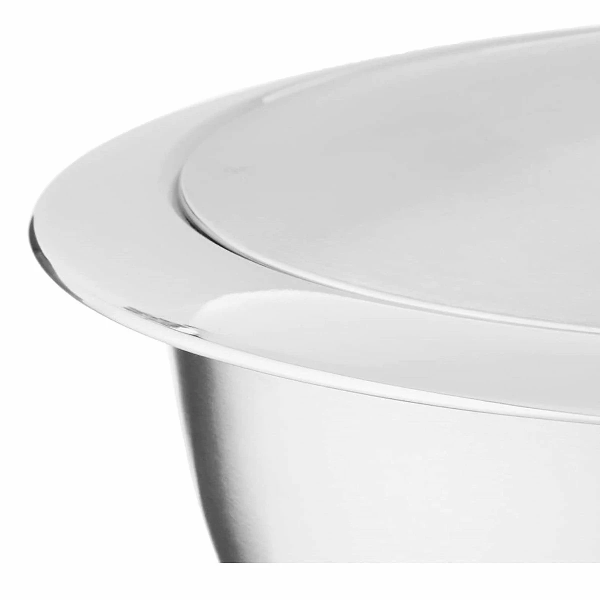 The bowl holds three quarts and handwashing is recommended to preserve the finish.
