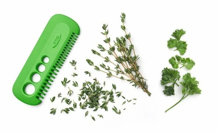 With this OXO special design, you will make use of all parts of this herb comb. This herb stripper in green has four holes of various sizes to feed stems through, you’ll find the leaves you need are all that remain. The back of this silicone comb can be used to maneuver leaves to be chopped and teeth are great for combing through full sections to quickly access just the best tender parts. When you’re looking for an inventive way to remove delicious leaves from tough stalks and stems, this Herb and Kale Comb will be the tool for the job.