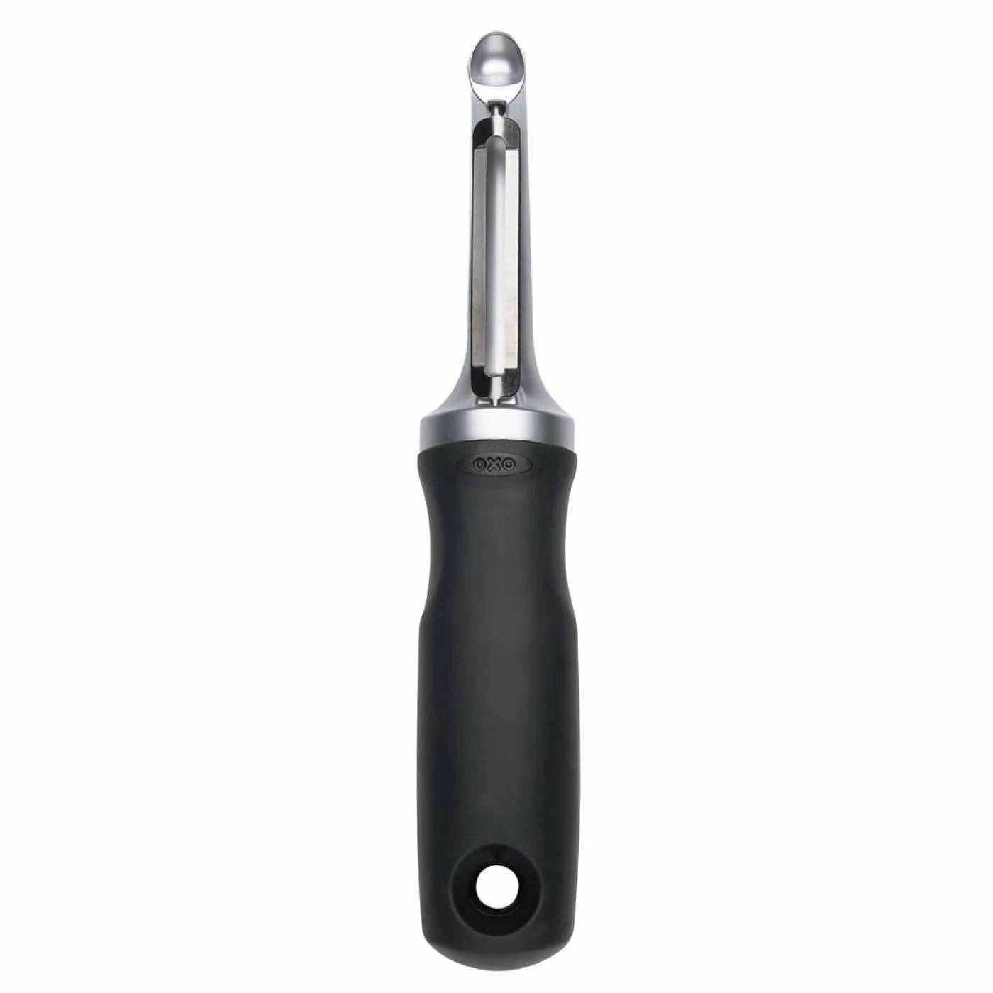 Make quick work of peeling all types of fruits and vegetables with OXOβs Pro Swivel Peeler. The premium details make for faster, more efficient peeling with this smartly-designed kitchen necessity. ITβs constructed from sturdy die-cast zinc and features a precision-ground, extra-hardened stainless steel blade for durability and efficiency. The soft, nonslip grip is comfortable in your hand so fatigue wonβt set in when youβre midway through a mound of potatoes. It even includes an eyer to remove blemishes from produce. Add this Pro Swivel Peeler to your kitchen tool chest and you wonβt have to dread the peeling prep work!