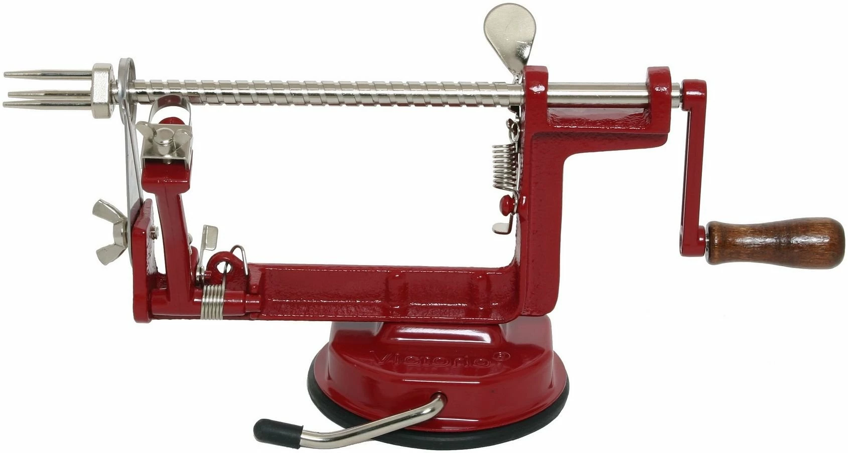 Kitchen Crop stands for Old World taste and wholesome goodness in food preparation. The Johnny Apple Corer Slicer helps families enjoy preparing and preserving nature’s harvest. This apple corer slicer has a suction base that can be set up on any smooth countertop or table. Use the adjustable peeling blade to just peel, the coring and slicing blade to just core and slice, or both blades together to peel, core, and slice.