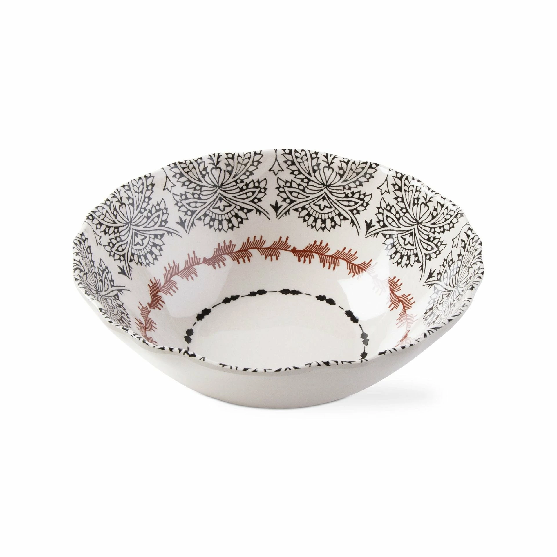 Spice up your table setting with the Khilana Bamboo Melamine Serving Bowl by TAG. This serving bowl is crafted from bamboo and melamine for long-lasting wear and durability โ yet designed to look and feel like ceramic. With the capacity to hold up to 112 oz., this large serving bowl is great for serving up family-sized favorites, including salad, fried rice, noodles, and more! Itโs also lightweight, BPA-free, dishwasher-safe, and shatterproof, making it perfect for casual meals, evening dinner parties, and outdoor dining. Featuring a unique India-inspired design, this Khilana Bamboo Melamine Serving Bowl by TAG is a great eco-friendly and affordable option and is sure to be an eye-catching addition to your dinnerware collection!