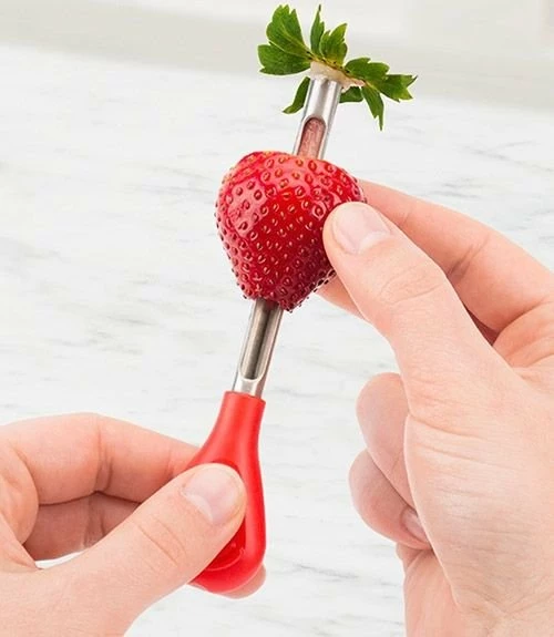 Love strawberries but not the time it takes to remove the hull? Tovolo has solved this problem with their new Strawberry Huller! This handy little kitchen helper features an easy-grip BPA-free handle and hallow, open-ended straw. Simply push the extra slim straw in from the bottom of the strawberry and pop out the hull, with minimal waste! Enjoy fresh strawberry shortcake, delicious homemade ice cream with fresh berries or even garnish a decadent chocolate cake easily and quickly with Tovoloβs Strawberry Huller!