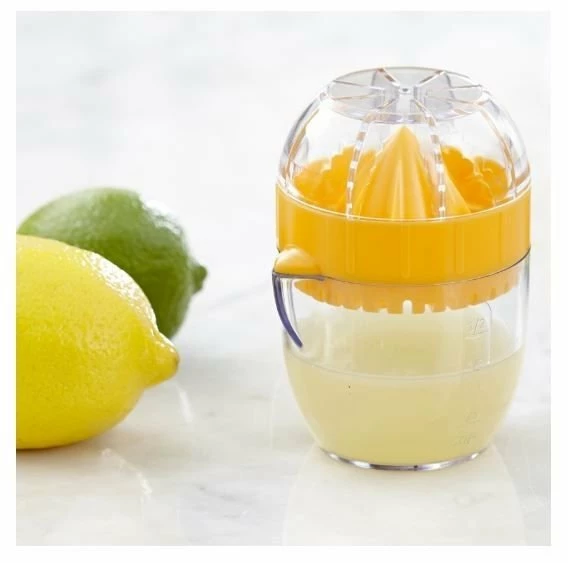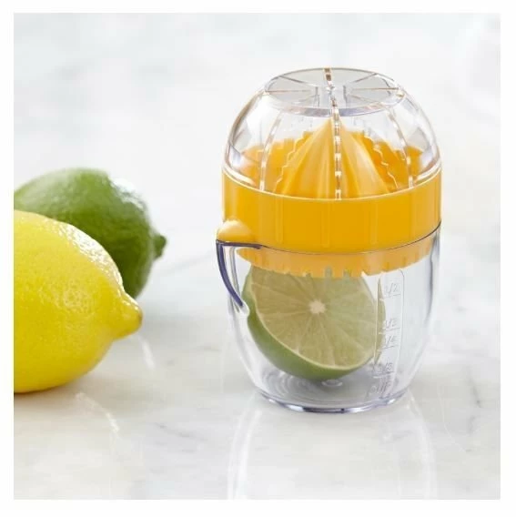 Add some zest to your kitchen the next time a recipe calls for the zip of fresh citrus with the Trudeau Citrus Juicer 09911067. This cheerful, sunny yellow citrus juicer is as adorable as it is straightforward to use. Itβs made of lightweight, durable, BPA-free plastic and features a convenient squeeze, pour, and store design β use the integrated strainer to press out the juice, measure your amount in the calibrated container, neatly pour out what you need via the drip-free pouring spout, then store whatβs left over in the strainer itself. What could be better? Hereβs what β the Trudeau Citrus Strainer is dishwasher safe and covered by a generous 5-year warranty.
